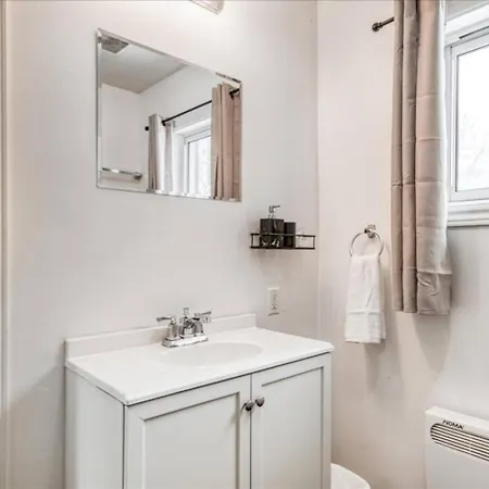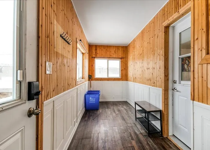 The spacious Charming 2 Bed 1 Bathroom Escape With Free Parking And Wifi Sudbury apartment provides easy access to various city attractions, such as Saint Jean de Brebeuf, situated just a 6-minute walk away.